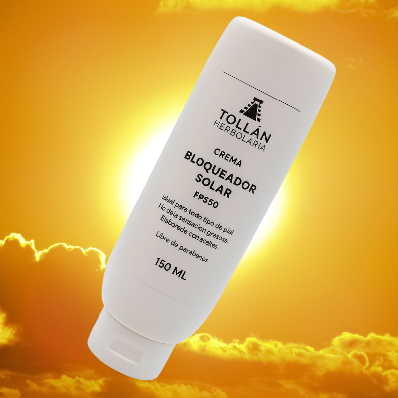 El Bloqueador Solar FPS50 de Tollán Herbolaria está elaborado con aceites vegetales que nutren e hidratan, mientras crean una barrera protectora contra los rayos UV.